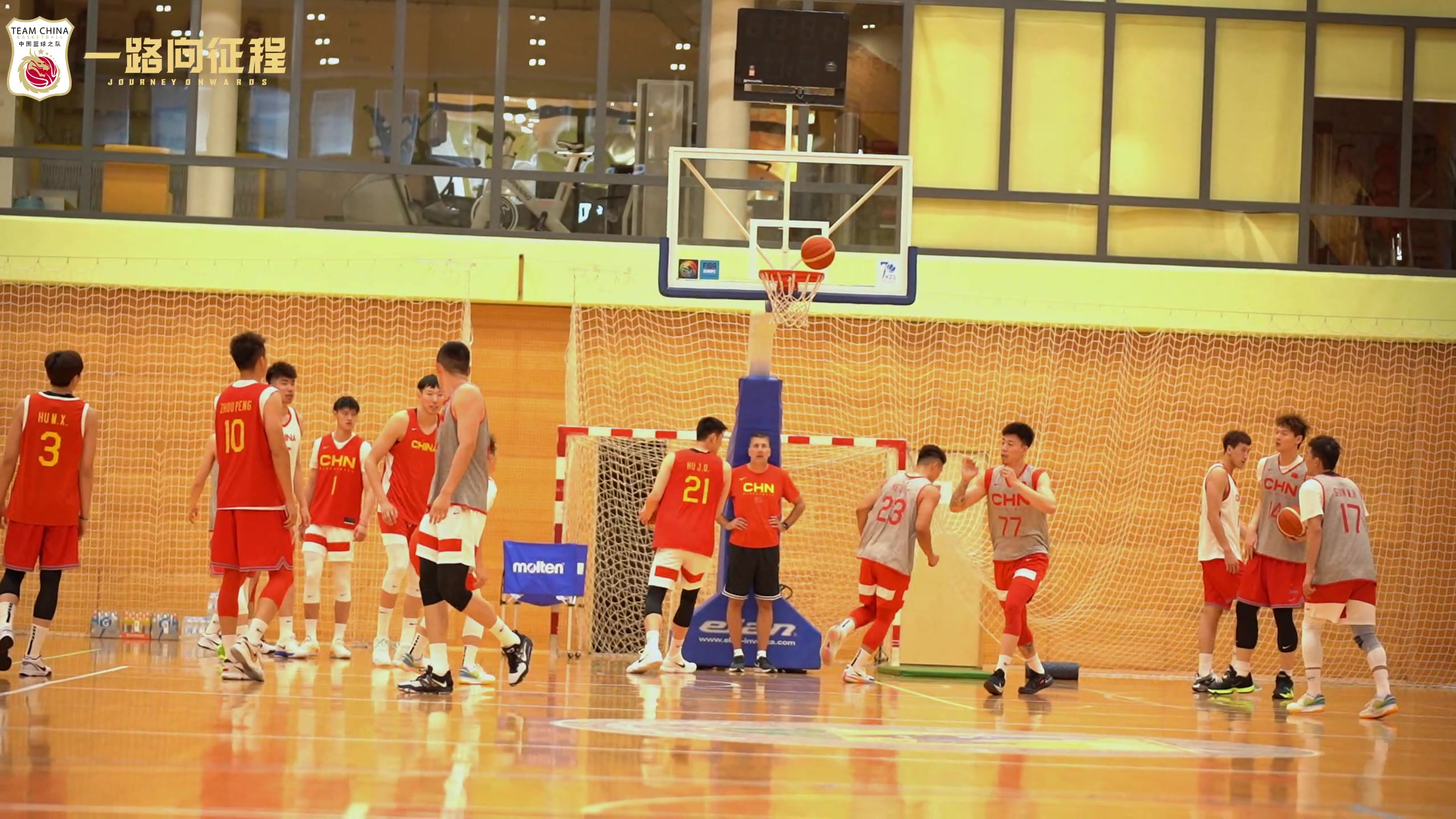 >中国男篮花式训练!前三个人跳起来传球 给第四个人空接放篮
