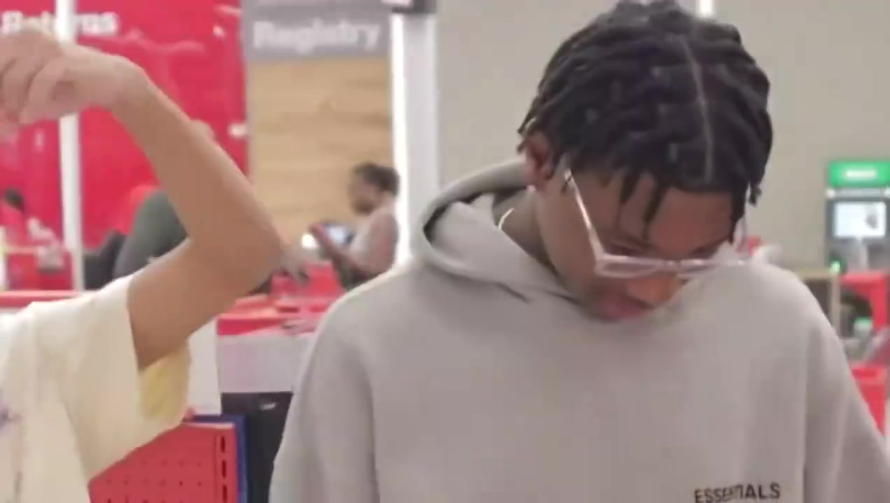 >网红诱导詹姆斯儿子做美国黑帮手势 发现不对劲就低头玩手机