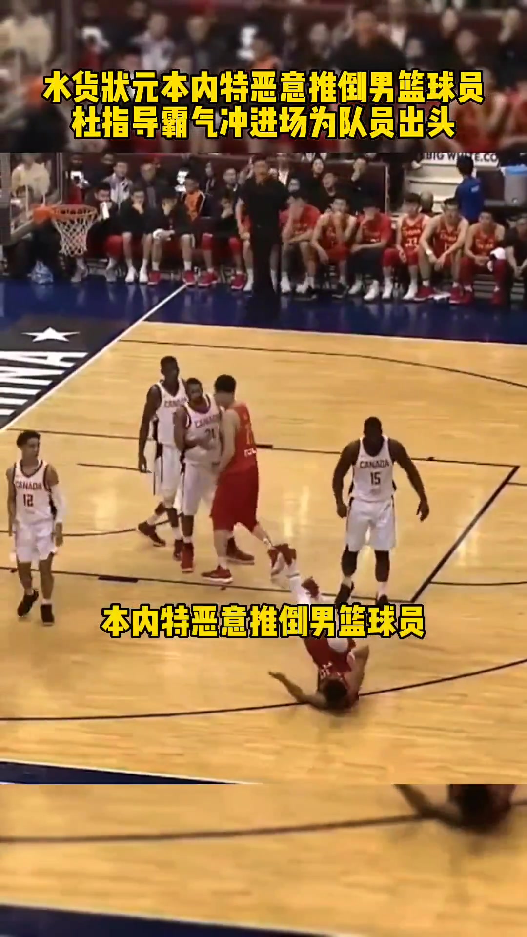 >水货状元本内特恶意推倒男篮球员,杜指导霸气冲进场为队员出头