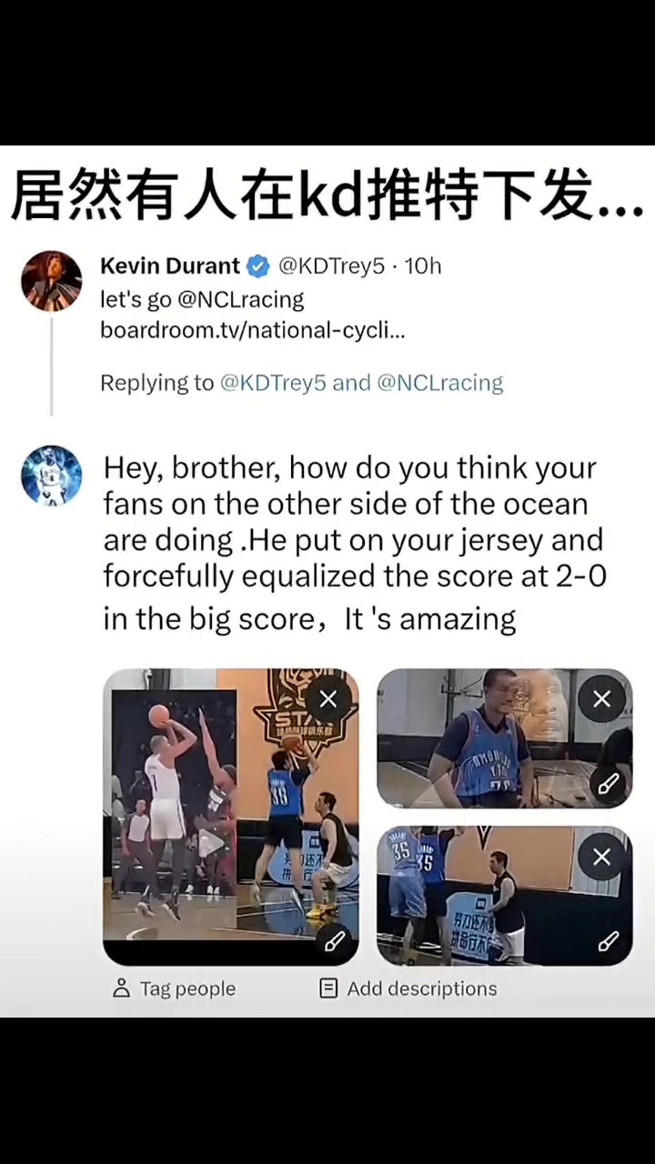 >真的炸裂!网友在杜兰特推特下贴图“35号徐静雨大战柯凡”🤣
