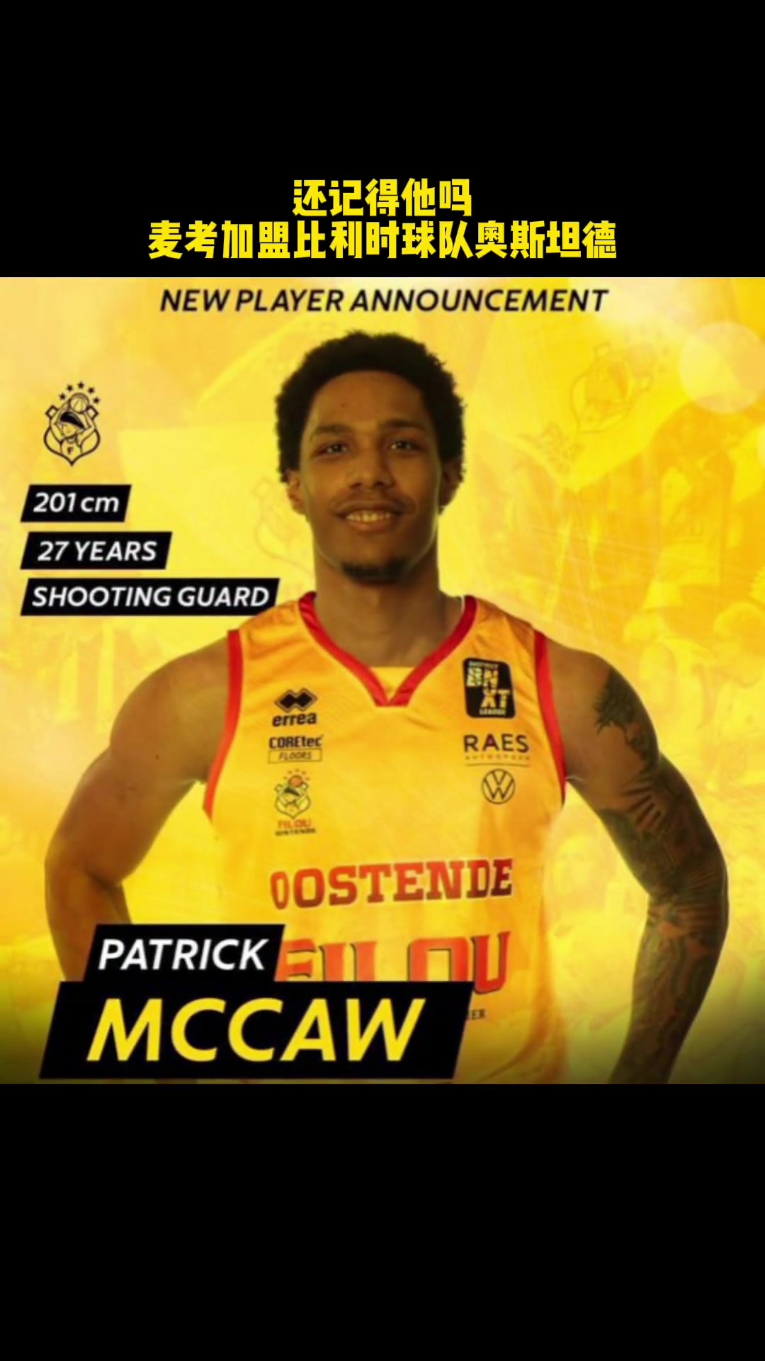 还记得他吗?前勇士球员麦考将加盟比利时联赛