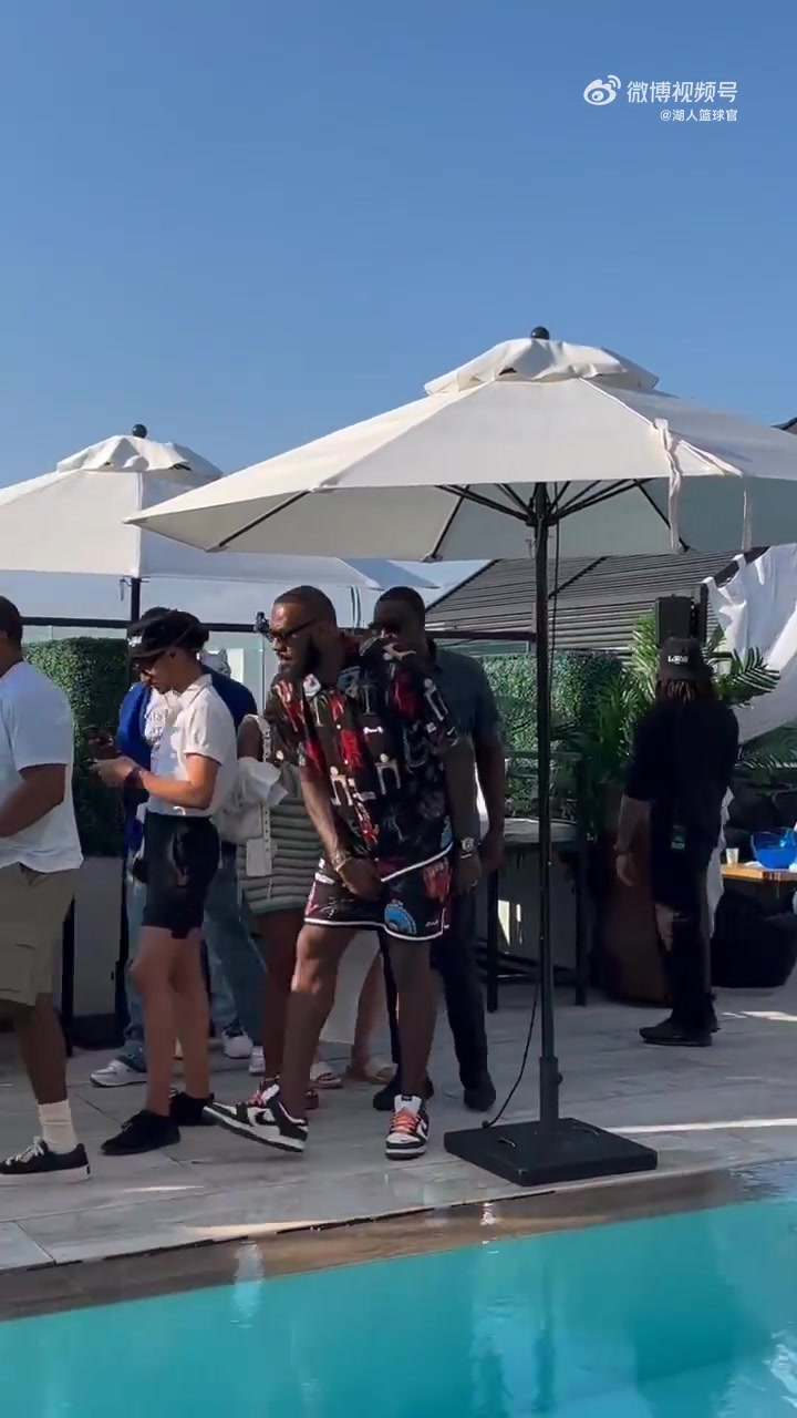 >老头悠闲得很!詹姆斯被拍到在多伦多参加派对