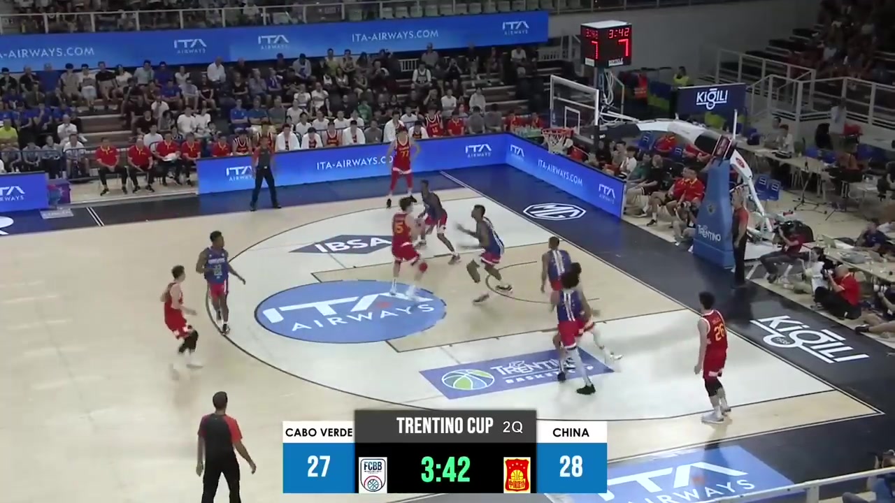 内线绝对优势!面对佛得角的中锋,周琦在篮下强势硬怼上篮打进
