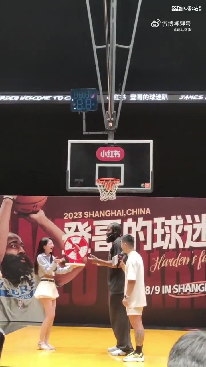 >把小姐姐都逗笑了!哈登中国行现场,再现转盘噩梦!