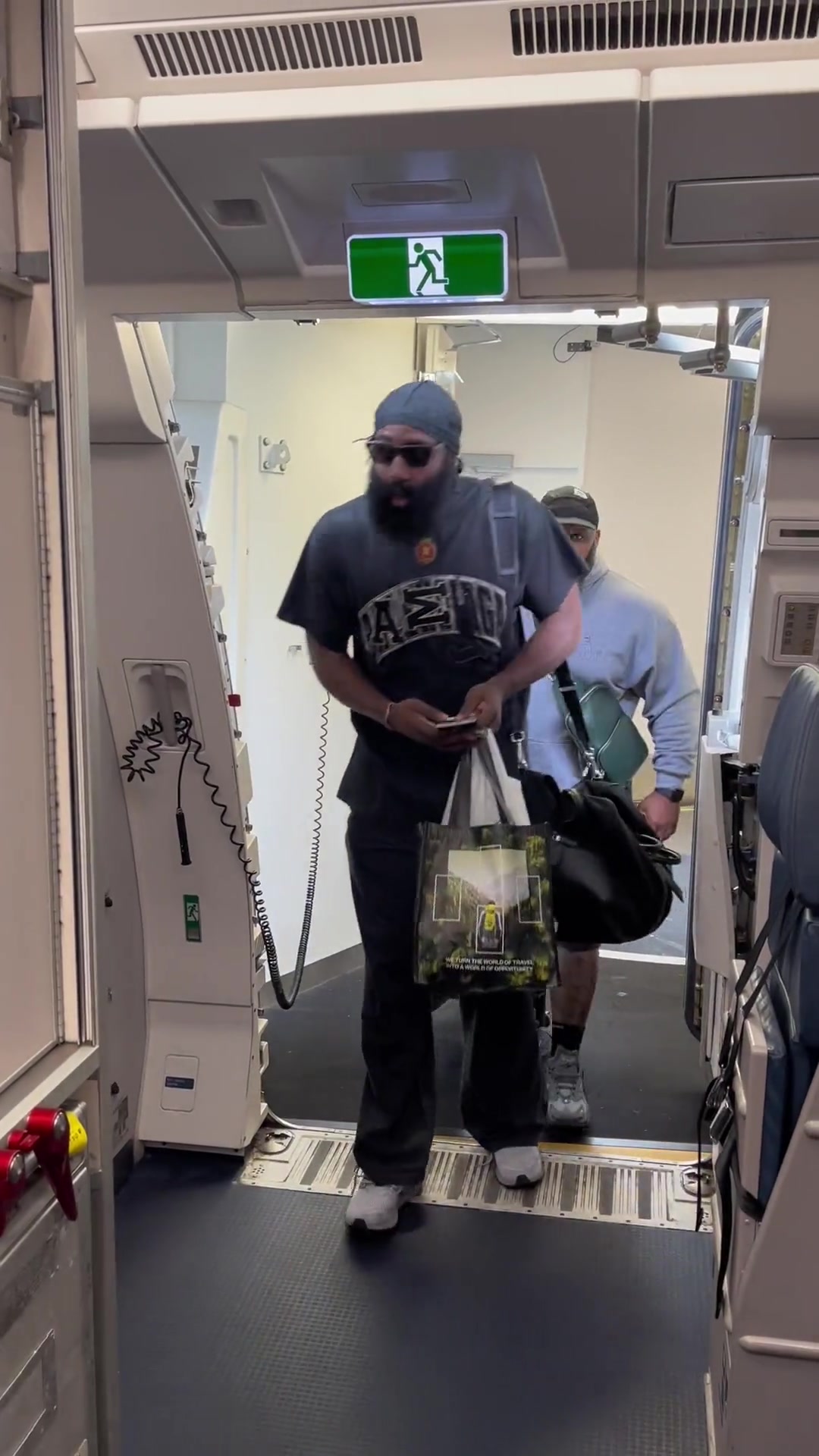 >哈登登上中国行飞机:On my way!!😍😍😍