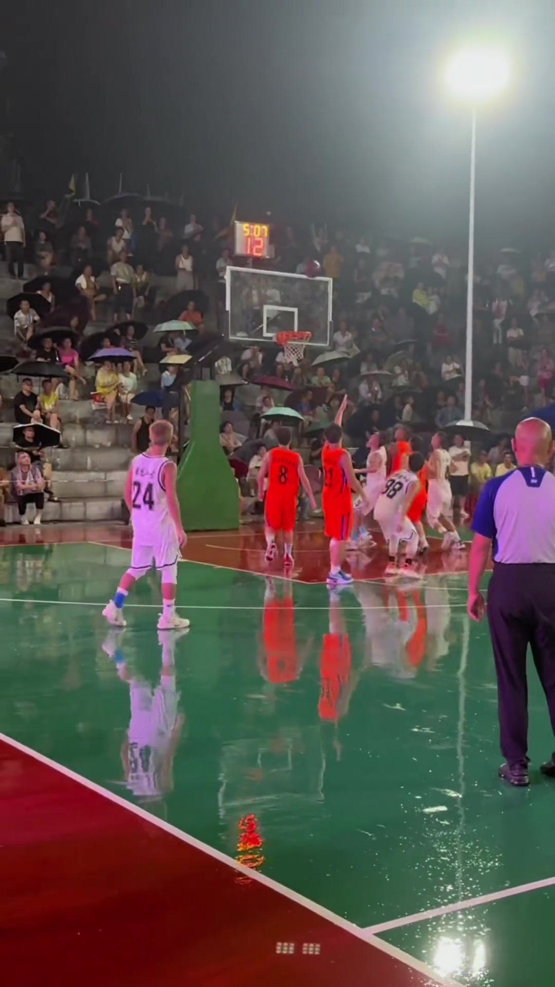 >主办方心真大!这样的环境下还能进行比赛 观众集体打伞观赛