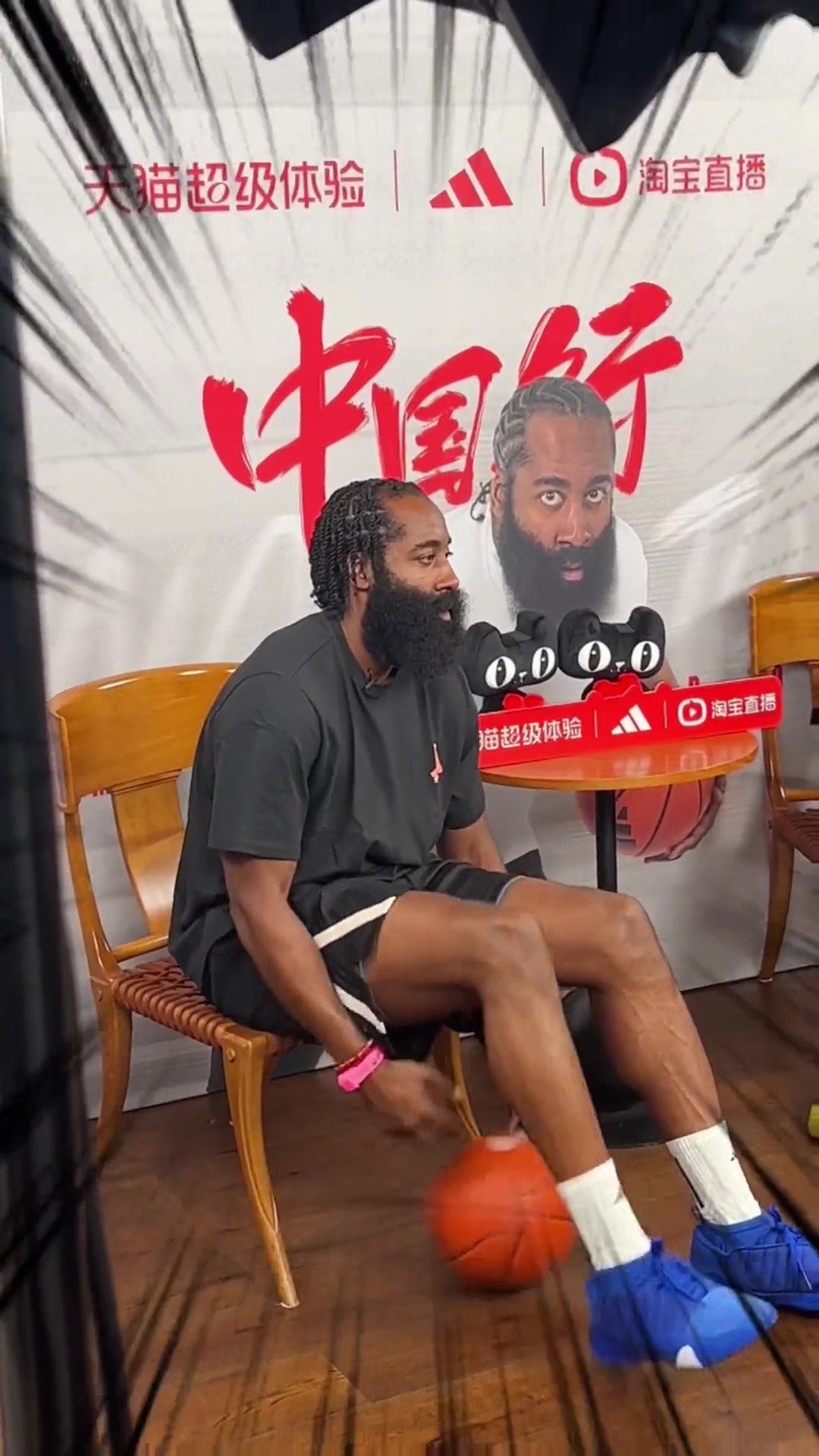 >坐着也是无聊!哈登在直播采访时手痒 坐着大秀运球