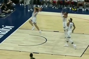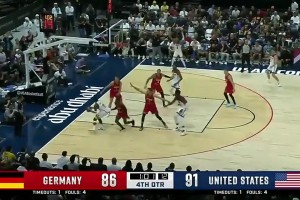 [里夫斯暴扣] 罕见!里夫斯打德国男篮上演双手炸筐 哈利伯顿兴奋地跳起来了