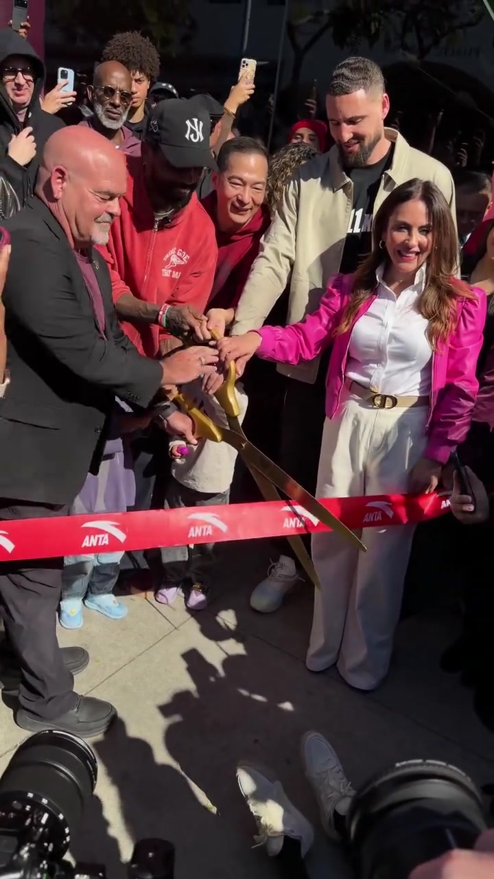 “欧文克莱合体现身为安踏在洛杉矶的新店剪彩~”