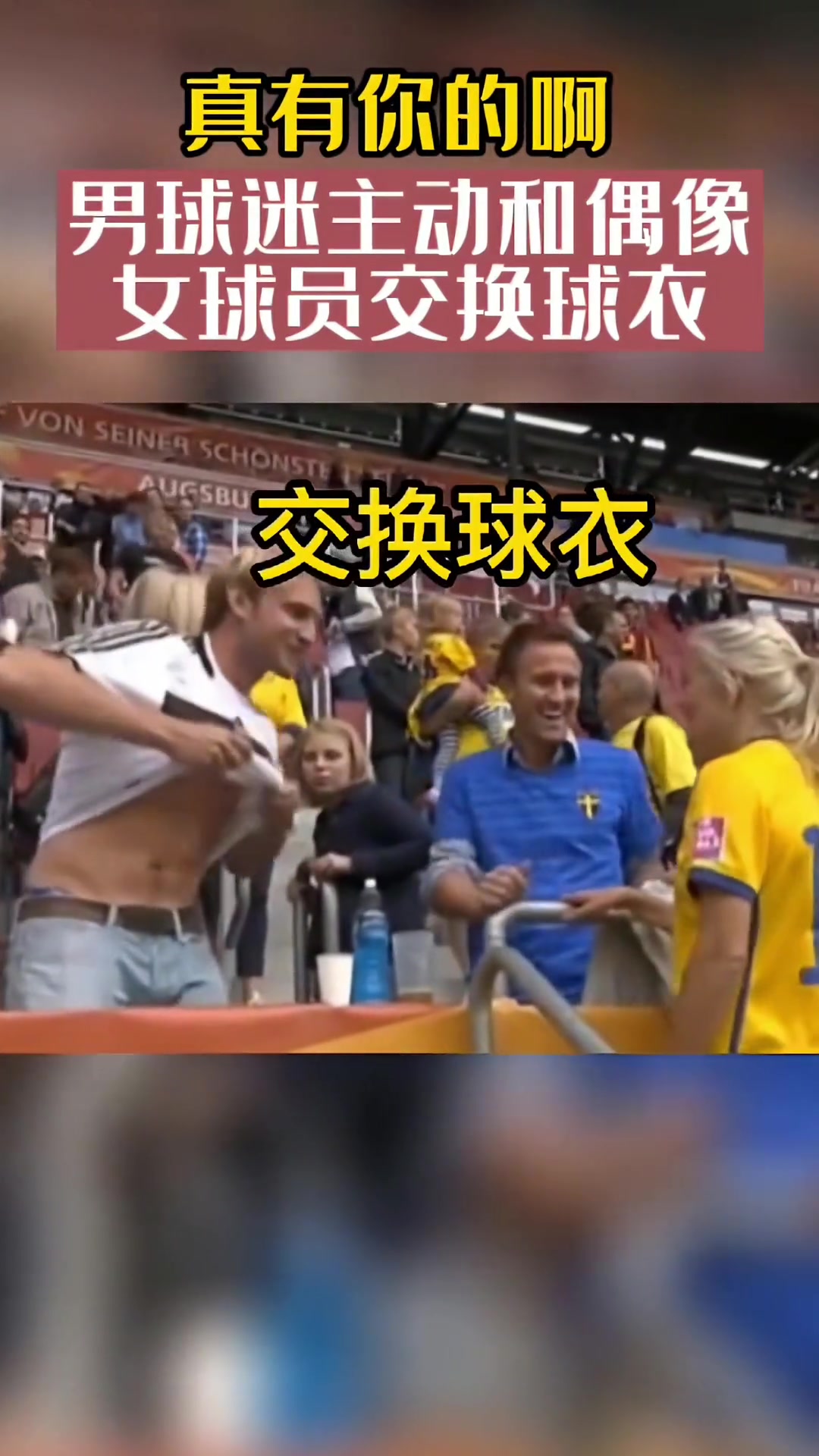 >男球迷和女球员交换球衣,整得小姐姐都不好意思了😂