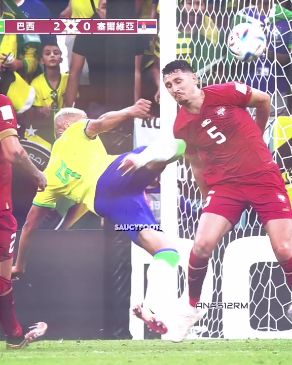 >舒展,高速相机欣赏理查利松世界杯上的惊天一射