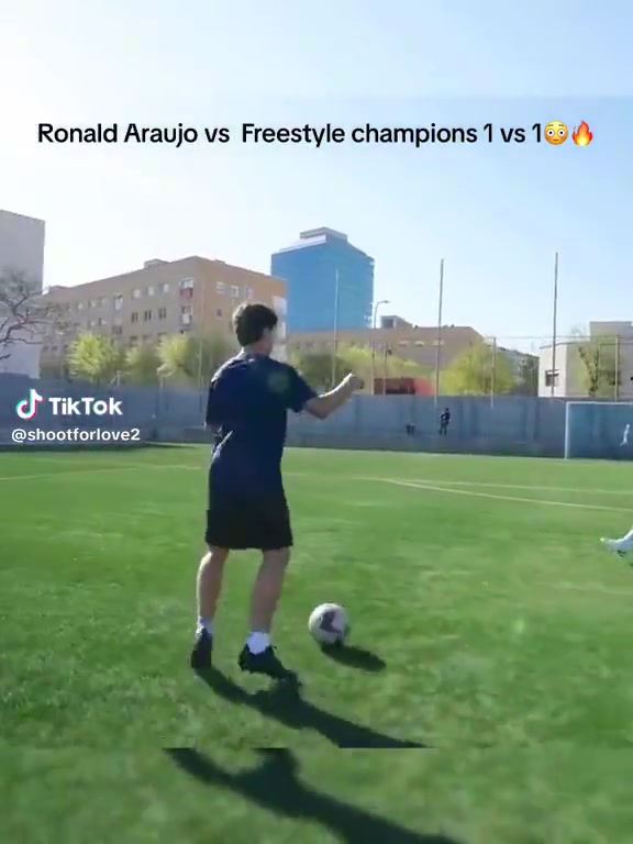 >花式足球冠军面对职业后卫阿劳霍,差距一目了然