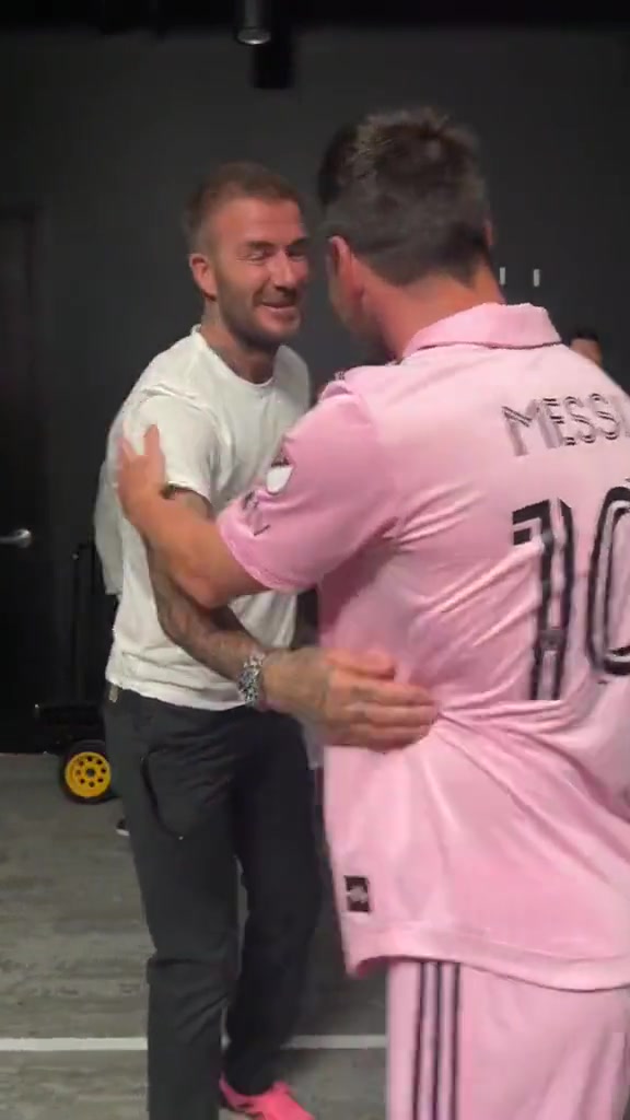 >迈阿密10号梅西来了!和老板小贝抱抱