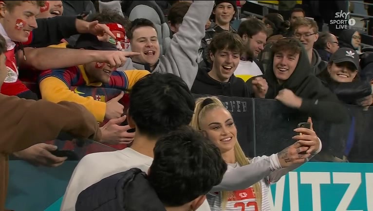 大受欢迎!瑞士女足颜值担当阿丽莎赛后与观众合影