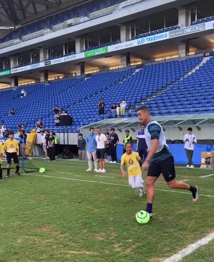 >有爱的总裁!C罗在日本与小朋友们一起踢球