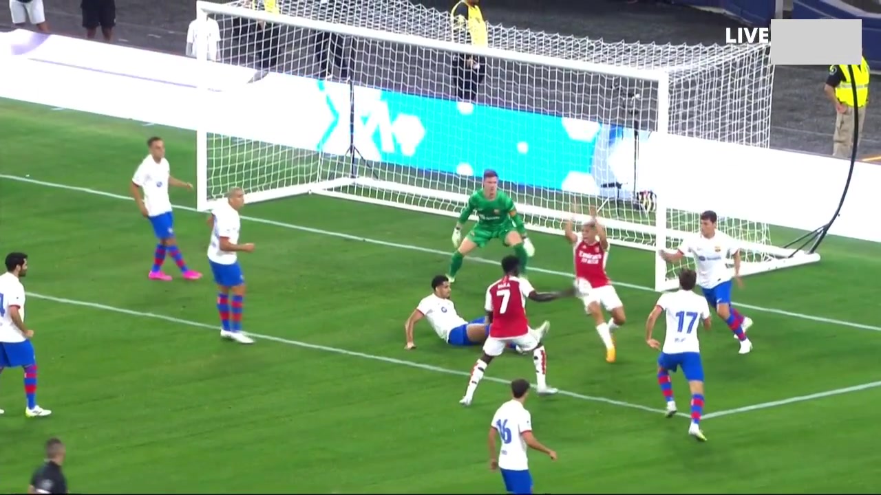 >阿劳霍禁区内手球送点,萨卡错失点球