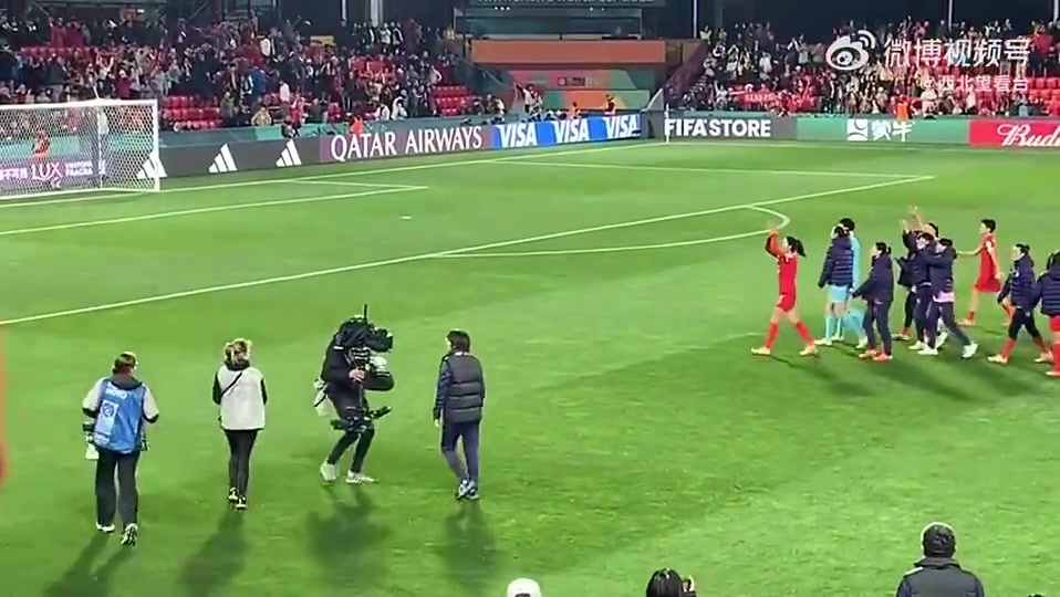 >水庆霞带领球员绕场一周,向远道而来的一万多名中国球迷致谢