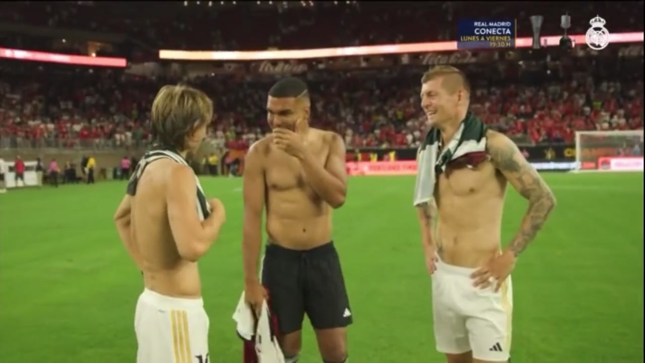 昔日皇马典礼三中场!克罗斯&魔笛&胖虎赛后脱掉上衣闲聊