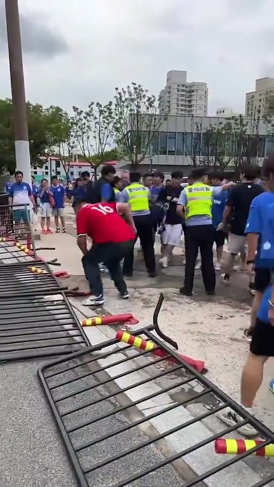 火药味很浓!身穿曼联球衣的球迷被推倒在地,随后自己起身离开