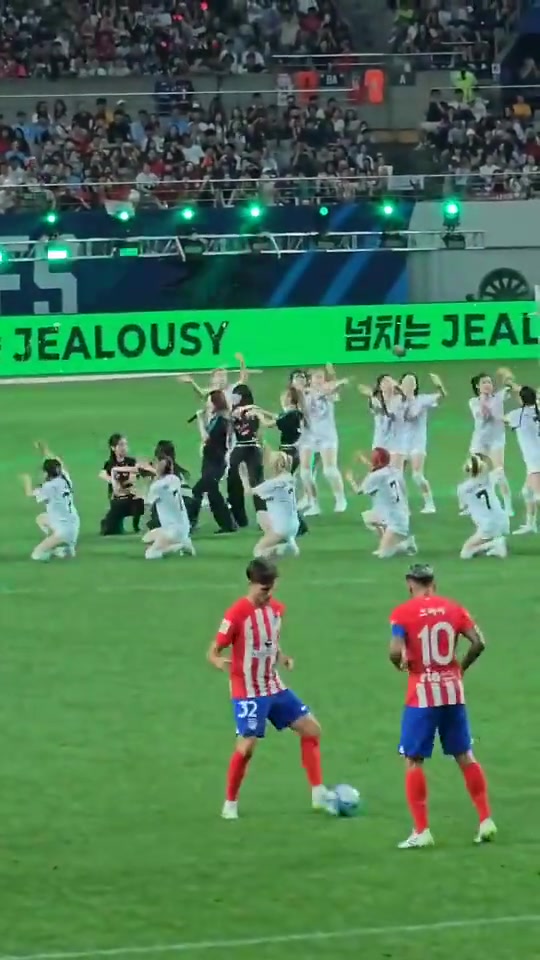 >韩国女团劲歌热舞,马竞球员不为所动场边热身