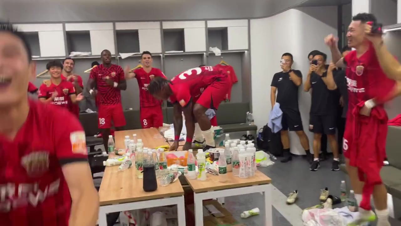客场5球血洗申花!海港众将更衣室庆祝胜利,卡隆上桌领舞