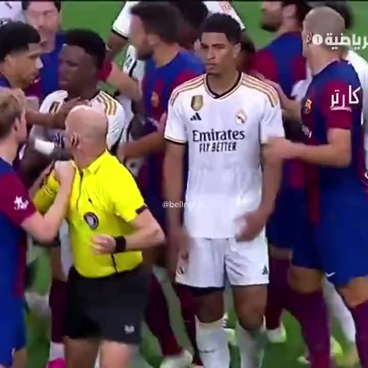 >两队球员爆发冲突!贝林厄姆一脸茫然不知所措😂