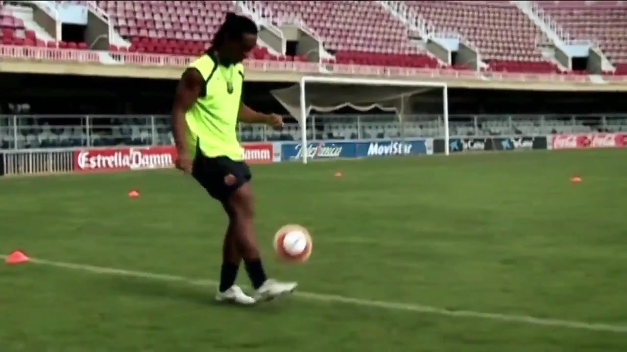 >你觉得是真的吗?小罗连续四次踢中横梁并保持足球不落地!