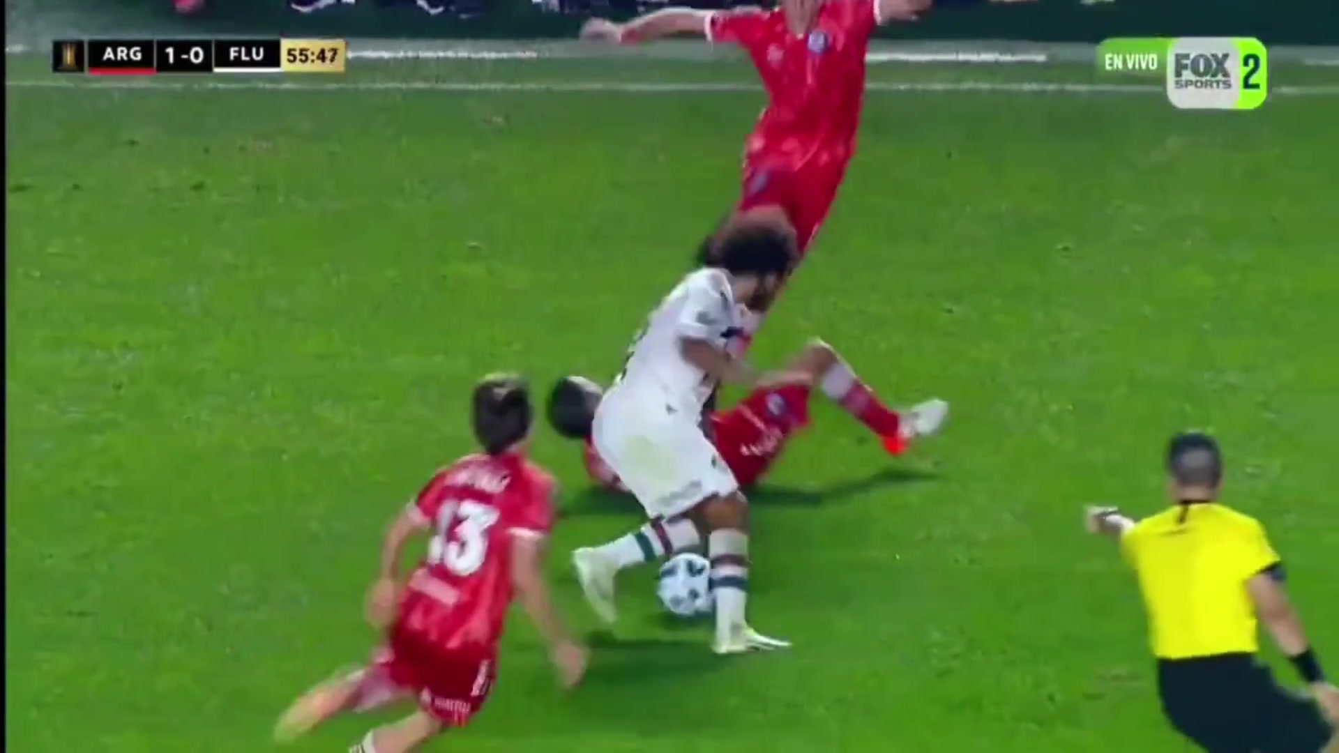 >吓人慎点!解放者杯上,马塞洛不小心踩折对方小腿,被直红罚下