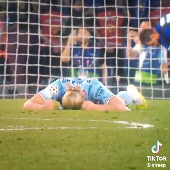 欧冠决赛哨响的一刻,哈兰德疯狂锤地庆祝