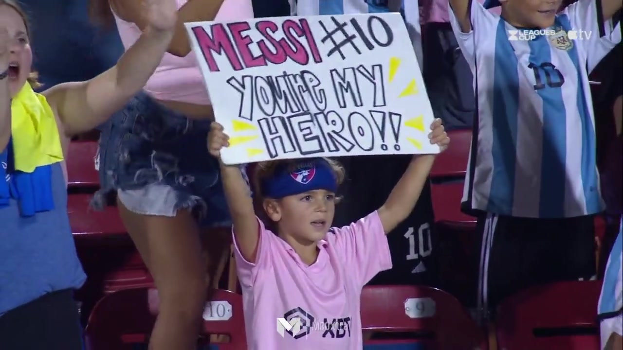 >对手小球迷举牌:梅西,你是我的英雄!