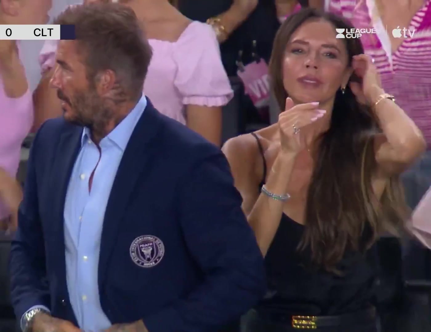 >小贝&贝嫂场边庆祝,贝嫂依旧风韵犹存