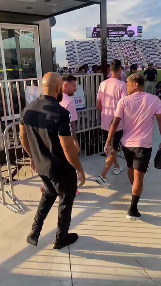 >他来了!梅西夹包进入球场