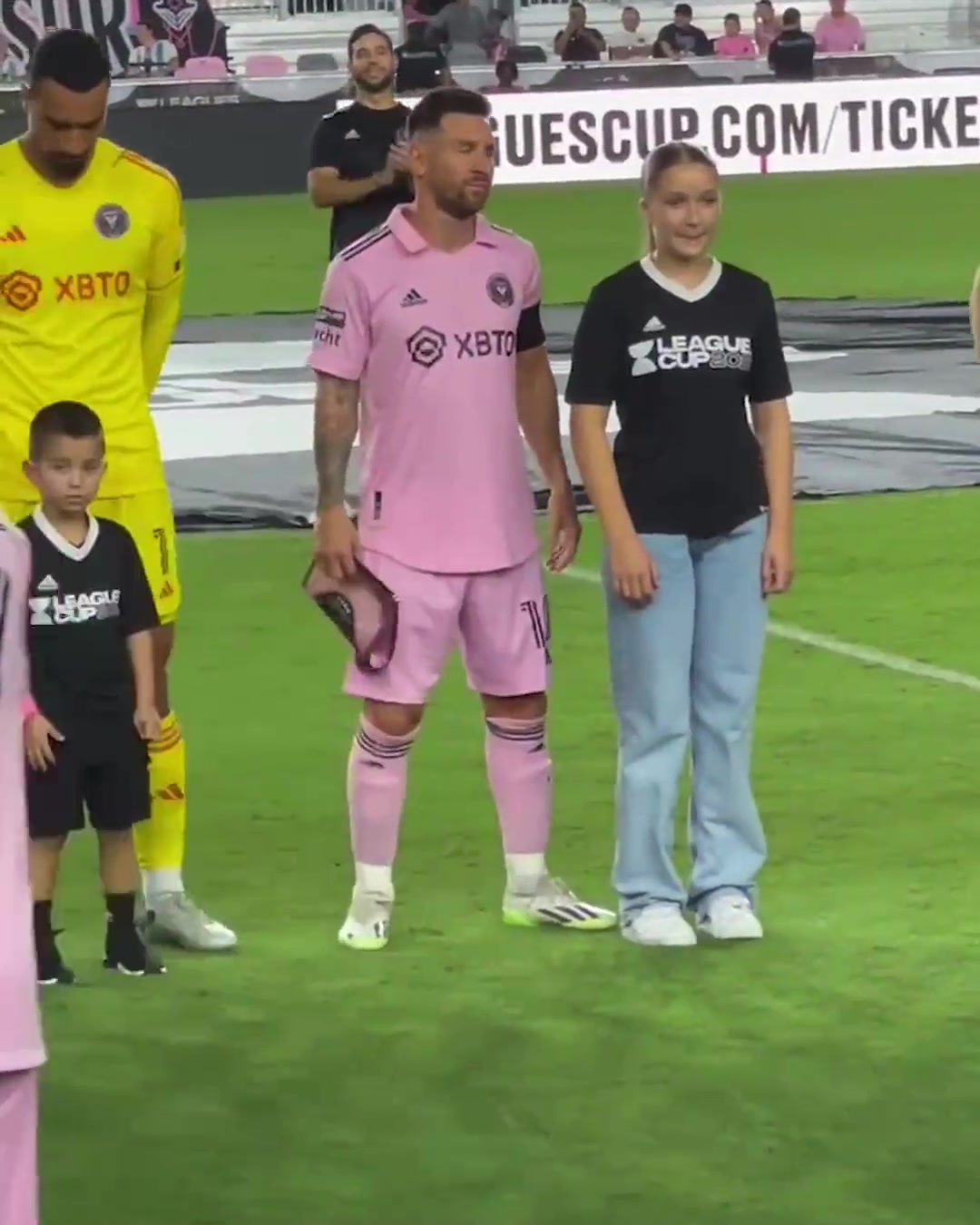 >小七给梅西当球童啦!被梅西牵着上球场太养眼