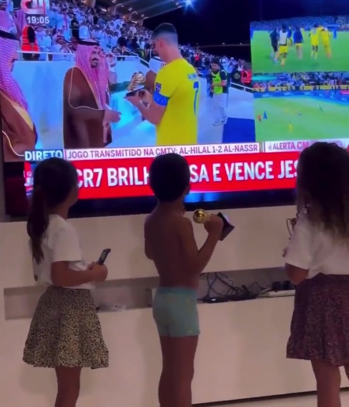 有爱的画面!C罗的儿女们在电视机前庆祝夺冠❤️