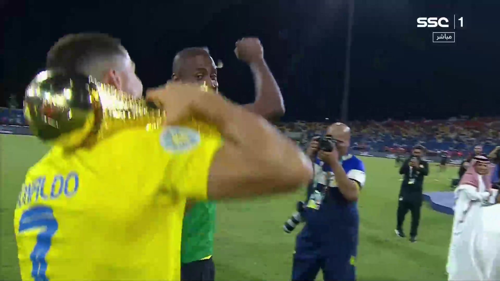 欢乐多!C罗赛后扛着奖杯庆祝😂