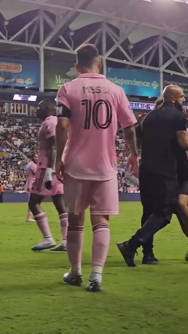 小球迷冲入场内求梅西合影,不料遭安保人员拉走