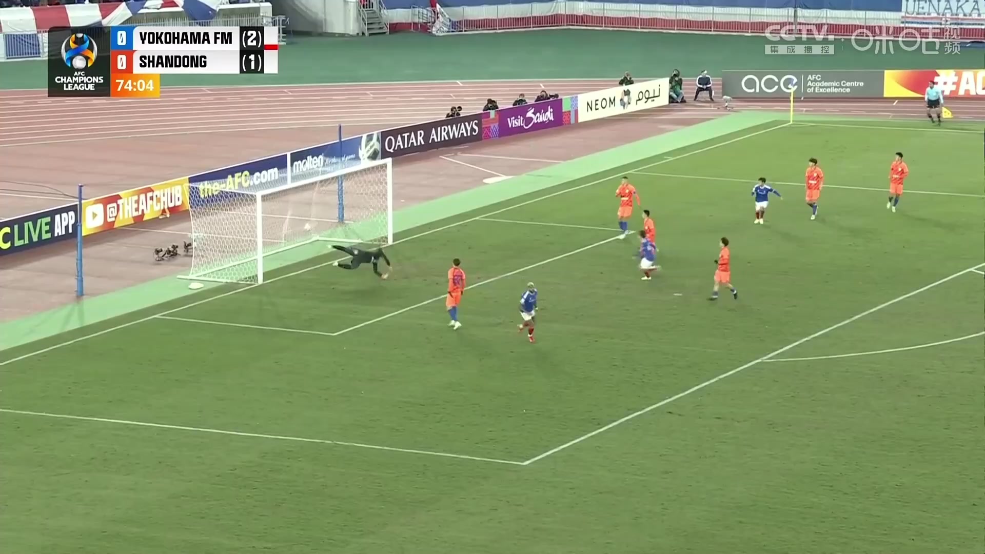 >泰山0-1落后了!后防线漏人,横滨外援洛佩斯凌空抽射破门