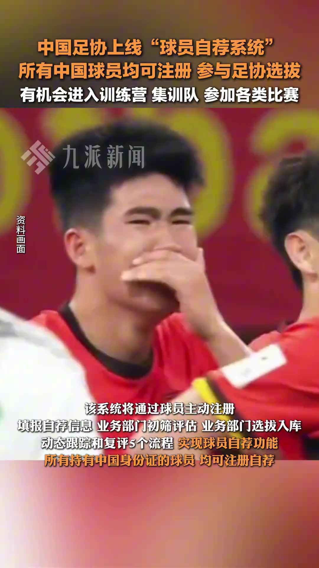 >中国足协上线球员自荐系统 :所有中国球员均可注册参与足协选拔