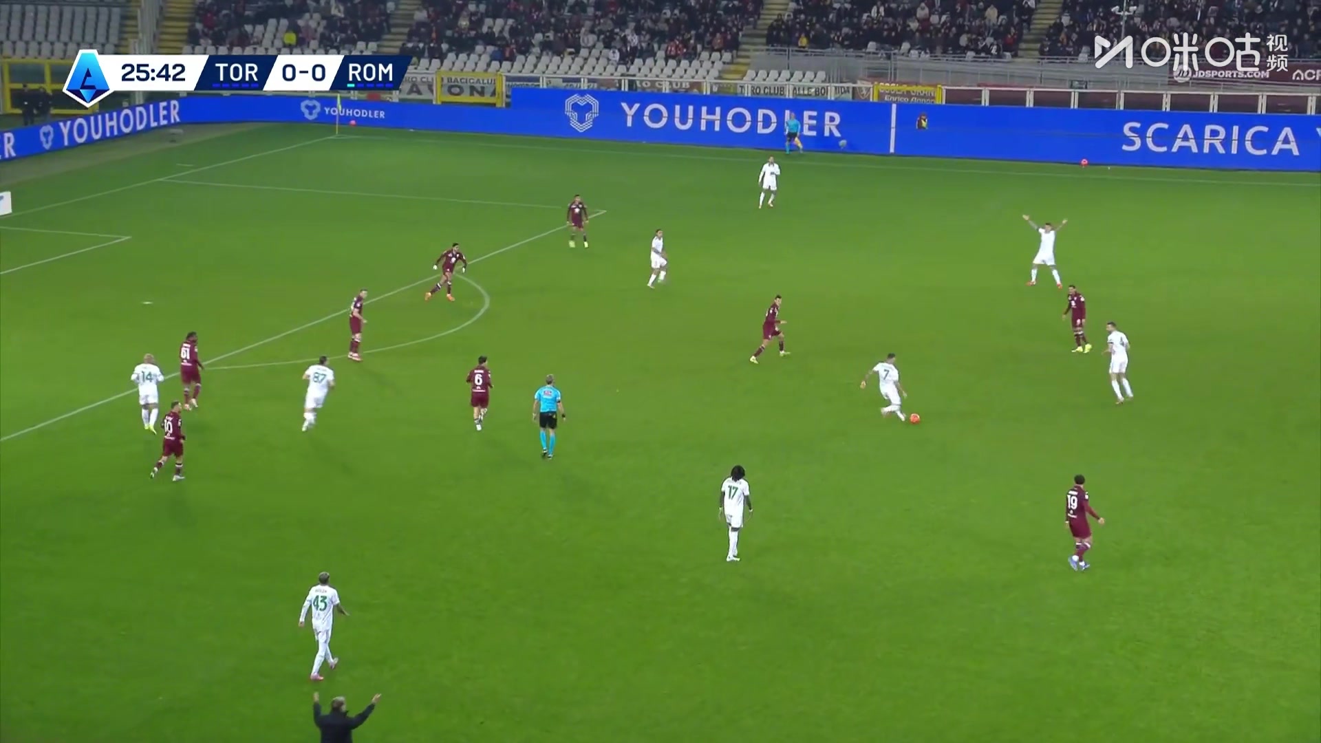 >罗马客场领先!迪巴拉横敲,马伦轻松推射斩获加盟首球