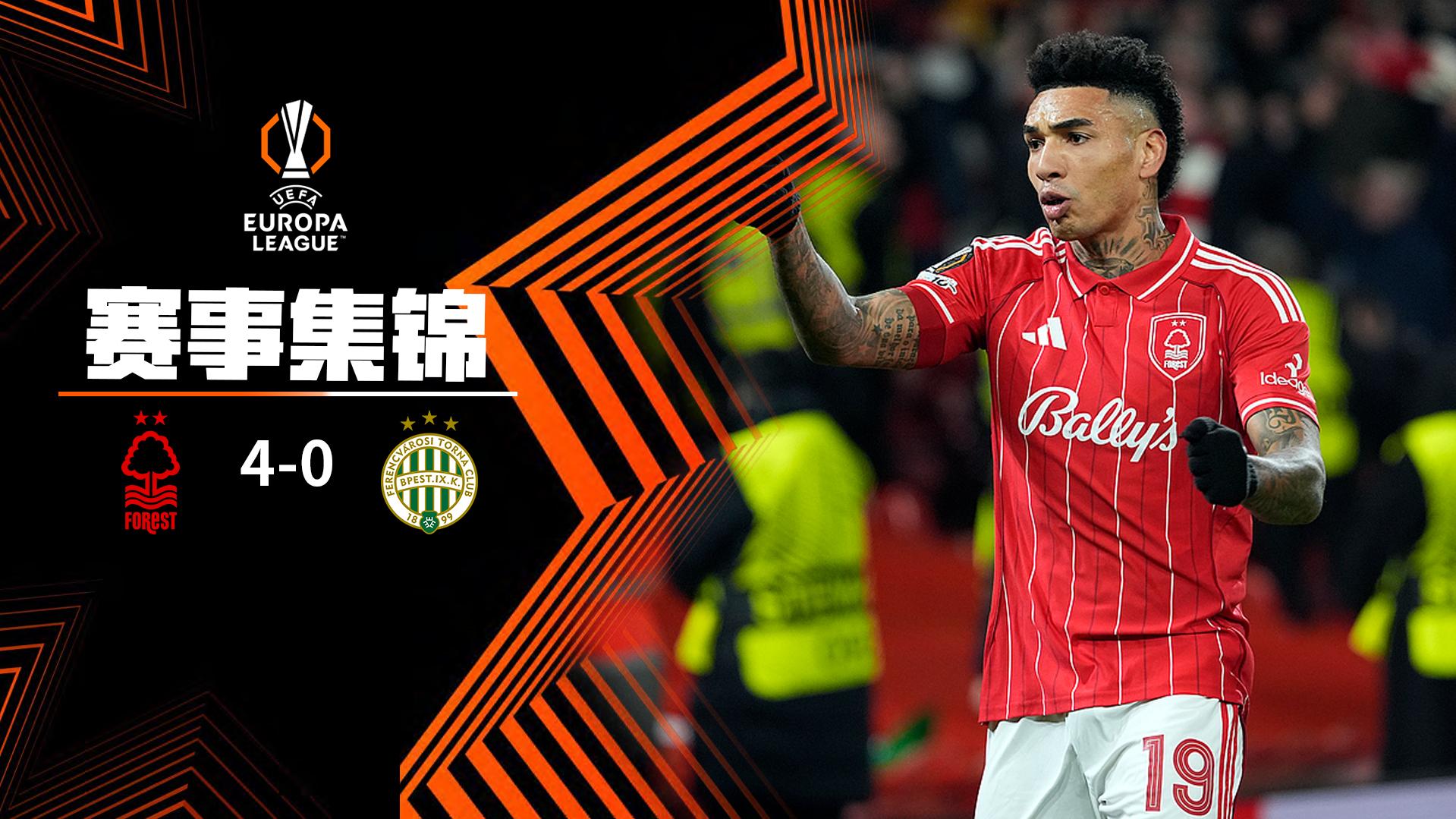 欧联杯-伊戈尔-热苏斯双响麦卡蒂破门 森林4-0费伦茨瓦罗斯进附加赛